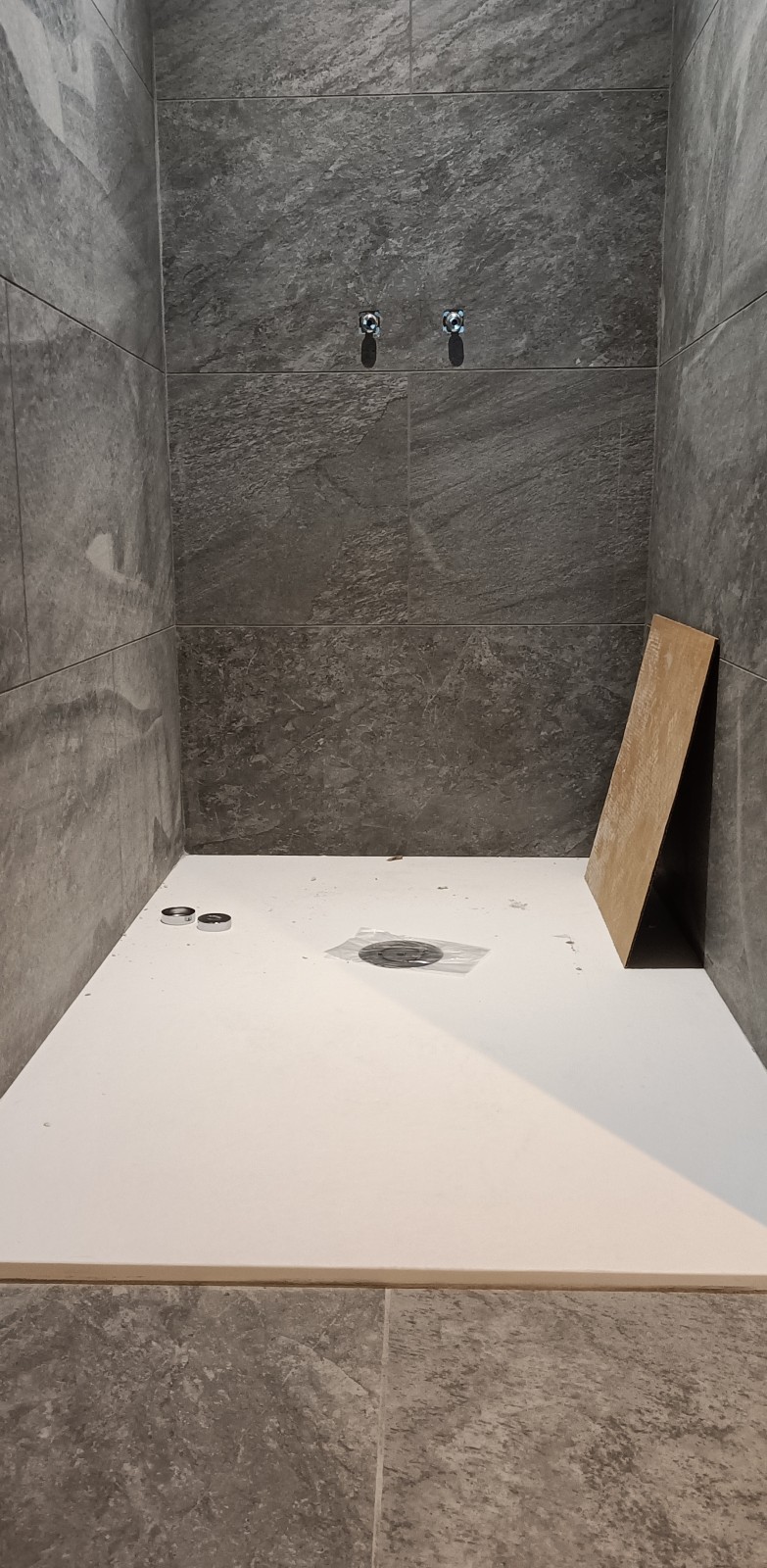Installation de bac à douche extra plat en pierre reconstituée par TPM Plomberie à L'Union